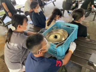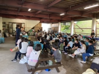 さて、今から今日の晩御飯になる飯盒炊爨、カレー作りが始まります。現在、宿舎の方から説明を受けています♪しっかりと聞いて、美味しいカレーを作りましょう!