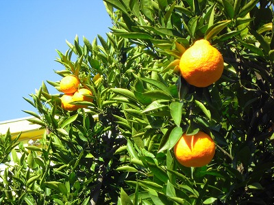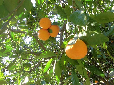 学校敷地内の果樹園には、今年も甘いミカンが実りました。