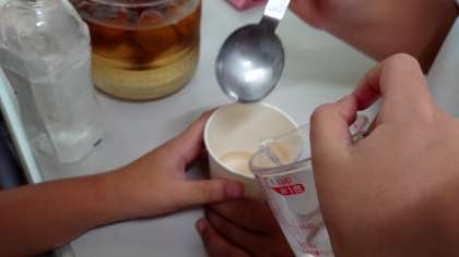 最後には、実際に調理係担当が以前休んでいて、梅ジュースを飲めなかった子のために、梅ジュースをつくりました。とても良い練習になりました。