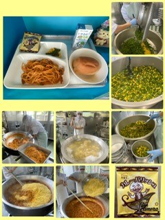 イタリアンスパゲッティは、豚肉、ウインナーを主材に、たまねぎ、にんじん、ピーマン、マッシュルームを使用したケチャップ味の児童に人気のスパゲッティです。