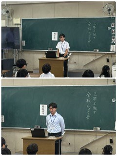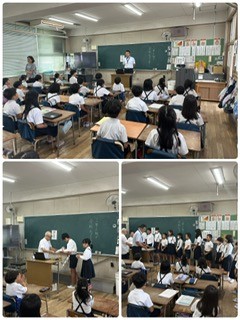 教育実習生もいよいよ最終週になりました。児童の前で、あいさつをしました。