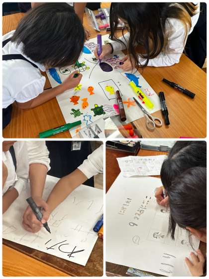 2時間目は、豊新フェスティバルに向けた縦割り班活動を行いました。お店に必要な物品や看板の作成を進めました。