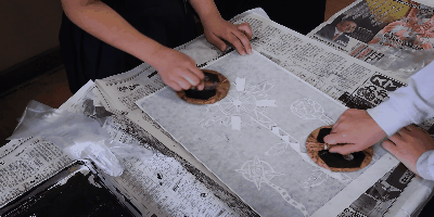 紙の裏表を間違えないようにしてから、インキの量を調節したり、端まで気を配ったりすることで、木版画をきれいに刷ることができました。全員が完成するまであともう少しです。