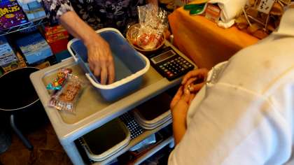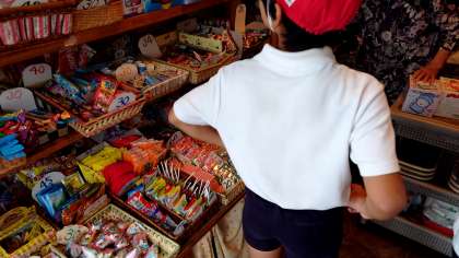 校区内にある駄菓子屋さんで、遠足のおかしを買いに行きました。決められた予算の中で、自分が買いたいお菓子を組み合わせて買うことができました。最後には、きちんとあいさつをして帰りました。