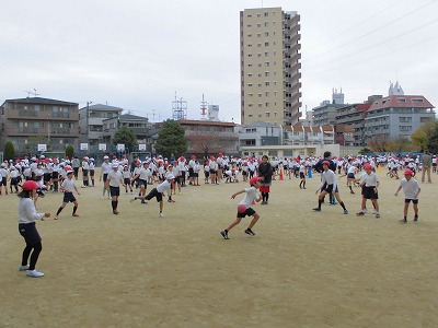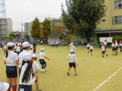 高学年の児童は、低学年の児童にボールを回してあげたり、一緒に逃げてあげたりと、とても優しい対応もしてくれていました。