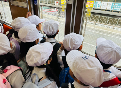 秋の遠足で服部緑地公園に行きました。ルールを守って、電車や道路を歩くことができました。