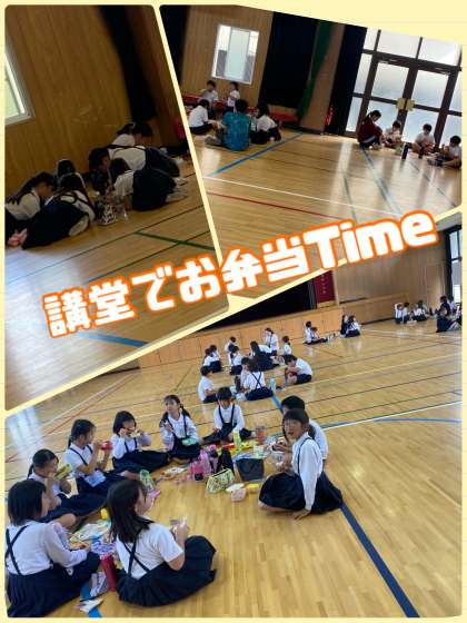 遠足が中止になったので、こうどうでお弁当を食べました。