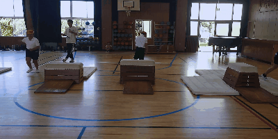 講堂で跳び箱運動をしました。4年生で新たに学習した「抱え込み跳び」や「台上前転」に取り組みました。着地にもこだわって跳ぶことができました。いろいろな技にどんどん挑戦していきましょう。