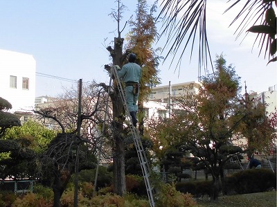 今日から21日(予定)まで、校内の大きな樹木の営繕(伐採・剪定)作業が始まりました。