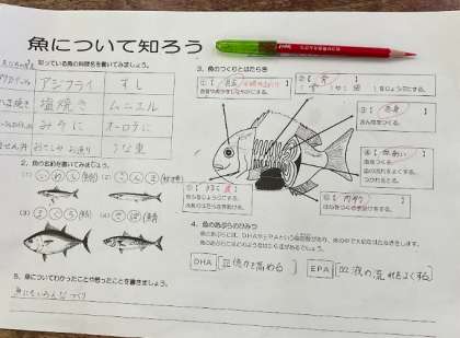 西淡路小学校の栄養の先生に授業をしていただきました。テーマは「魚について知ろう」です。日本では、魚を食べる人が減ってきていることを知りました。