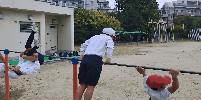 鉄棒運動では、難しい足かけ回りを何回も成功させていた子がいました。また、逆上がりができるように台を使って何回も挑戦している子もいました。これからもいろいろな技に挑戦していきましょう。
