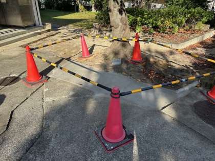 土曜日に工事があり、正門横のさくらの木のアスファルトの舗装工事が行われました。