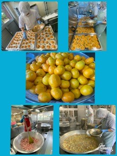 変わりピザは、ツナ、コーン、ピーマン、ピザソース、チーズを混ぜ合わせて、ぎょうざの皮にのせ、焼き物機で焼きます。児童に好評な献立です。