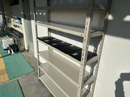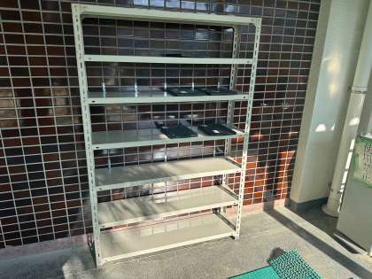 児童が使用するタブレットの置き場を運動場に隣接している廊下(給食室横)に新しく設置いたしました。