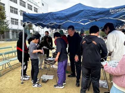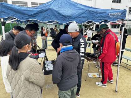 今からニュースポーツですが、その前に焼き芋の準備をします!