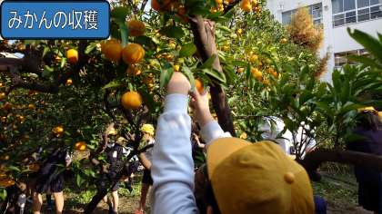 豊新の森にあるみかんをはさみを使って収穫しました。たくさん数があり、手を伸ばさなくてもとれるところに実っているものもたくさんありました。お家で食べるのがとても楽しみです。