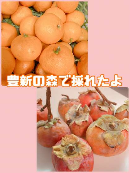 豊新の森で柿やみかんが採れました。今年は柿の実が9つしか採れなかったのでみんなで1口ずつ食べました。「豊新の柿も売ってる柿と同じくくらい甘く育つんだ!」と驚き、「おいし〜い」と言い、ご満悦でした☆彡みかんはおうちで食べ、「甘酸っぱくて、最高」との声が多数上がっていました。