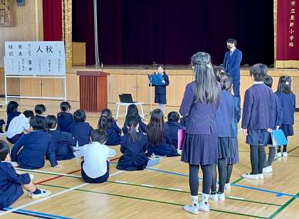 また、この二学期に努力したことやできるようになったことを1年生から3年生の学級代表のお友達が、懸命に発表してくれました。話す子達も聞く子達も精一杯努めている姿に、豊新小学校の二学期の学びの姿として受けとめ、成長を感じました!