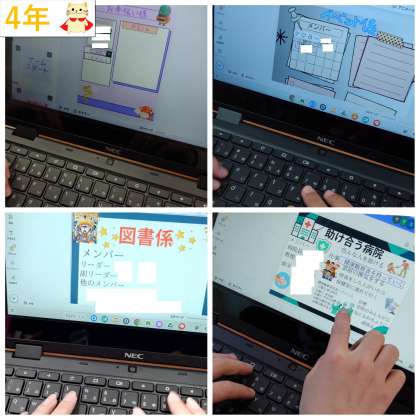 係の活動表をパソコンを使って作成しています。各係でオリジナリティのある仕上がりになっています。