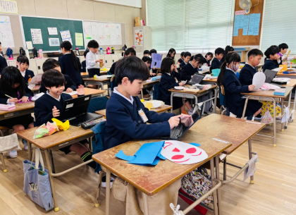 顔のパーツを描いたり、切ったり、貼ったりしています。