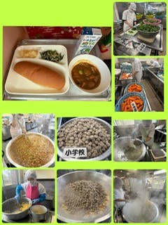 ミートボールと野菜のカレー煮は肉だんごを主材に、たまねぎ、だいこん、にんじん、しめじ、青みにむきえだまめを使用し、カレールウの素などで味付けした煮ものです。