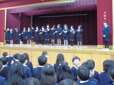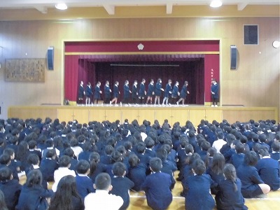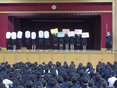 普段より保健委員会さんは、手洗い場の石鹸の交換や補充をしてくれたり、手洗いやうがいの啓発ポスターを描いてくれたりと、積極的に活動をしてくれているのですが、今日は、「かぜ予防のダンス」の披露でした。