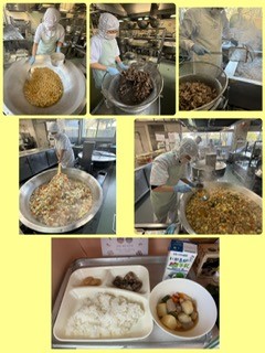 くじらのたつたあげは、味の付いた冷凍のものをあげています。日本では、昔からくじらを使ったさまざまな料理が食べられてきました。肉だけでなく、皮や内臓、尾びれまで工夫して使うことができるため、くじらは「捨てるところがない」と言われています。