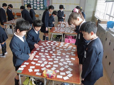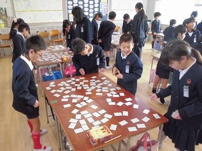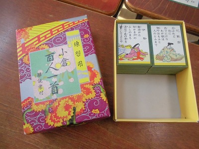 4年生のこのクラスでは、国語の時間に本格的な札の「小倉 百人一首」を行っていました。
