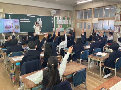 給食で出てくる食材の旬は、春夏秋冬どれかを考え、学びました。