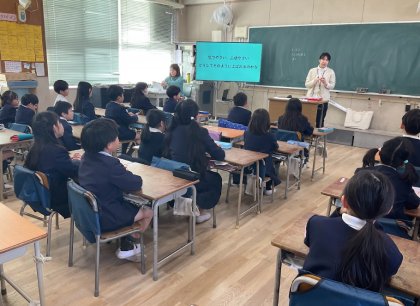 2年生は、栄養指導で「食べ物の旬について知ろう」をめあてに学習しました。