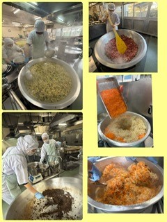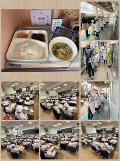 令和5年度学校給食献立コンクール優秀賞に選ばれた献立です。生徒が考えたねらいは、「キンパを給食で食べたいと思い考えました。自分で手巻きするので、楽しく食べられます。」です。
