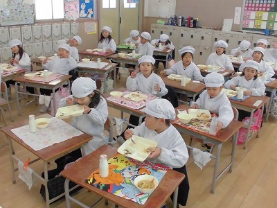 教室を回ってみると、少し苦いですが、多くの子どもたちはお替りをしてたくさん食べてくれていました。