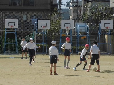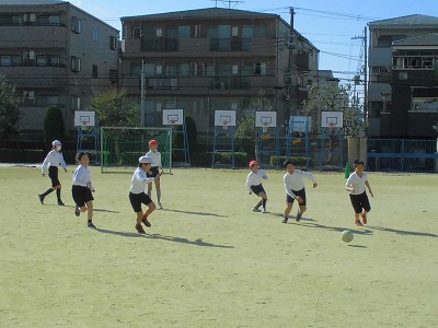 5年生が体育の授業でサッカーをしていました。