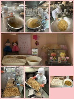 豚肉のしょうが焼きは、豚肉にしょうが汁の入った調味液で下味をつけ、たまねぎを混ぜ合わせ、焼き物機で焼きます。