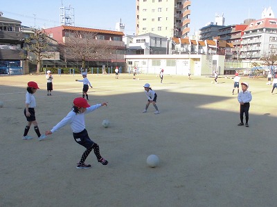今日が初めての学習のようで、最初のうちは思うようにけれなかった子も、最後の方にはペアの相手に向かってしっかりとパスができていました。
