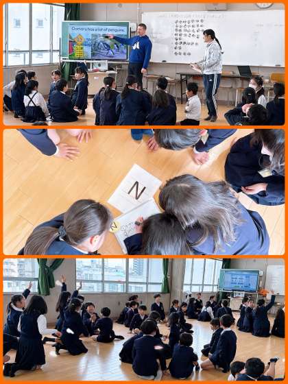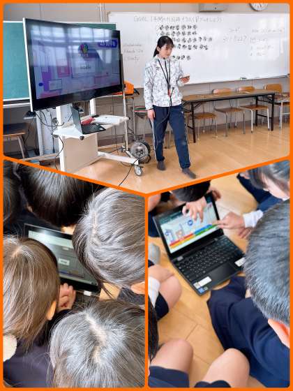 3年生になってからはじまった外国語活動。1年間のまとめとして、1.2組合同で最後の外国語授業を行いました。