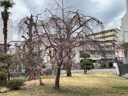 自慢の枝垂れ桜も花がちらほらと咲き出しました♪