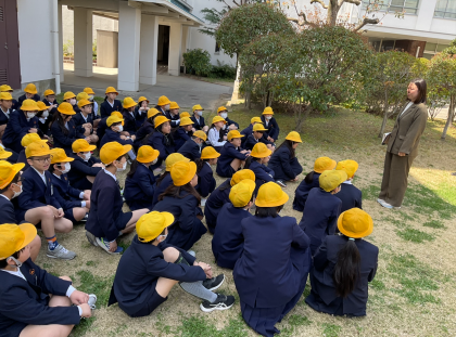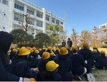 6年生、最高学年としての1年がスタートしました。始業式のあとに、豊新の森で学年集会を行いました。