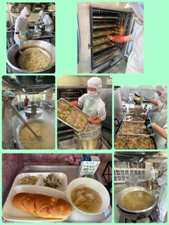 豚肉のガーリック焼きは、下味をつけてピーマンと一緒に焼き物機で焼いています。しっかりと温度もはかっています。ガーリック風味のやわらかい豚肉に仕上がっています。