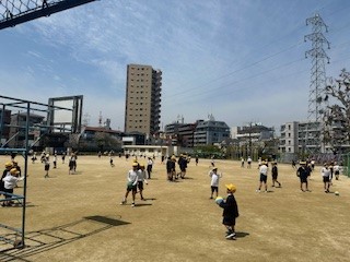 1年生の児童も、ボール遊びをしたりなわとびをしたりして遊んでいました。