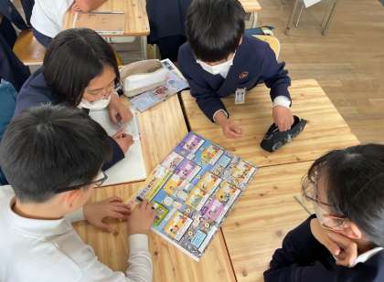 社会の学習では「日本国憲法のすごろく」をしています。楽しそうな声が聞こえています。さぁ、だれが早くゴールできるかな??
