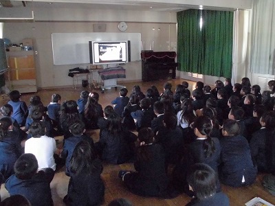 3年生が多目的室で、28日の木曜日に行く社会見学の事前学習をしていました。