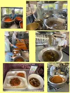 にんじんしりしり風は、新献立です。細切りしたにんじん、ささみ、かつおぶしと調味料を混ぜ合わせ、焼き物機で焼きます。