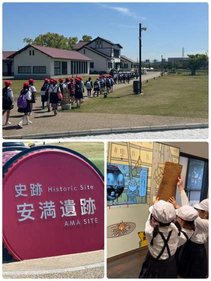 春の心地よい陽気の中、3年生は安満遺跡公園へ遠足に出かけました。お天気にも恵まれ、子どもたちは笑顔いっぱい、元気いっぱいに1日を過ごしました。