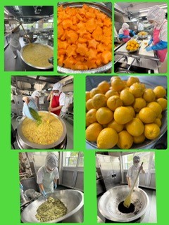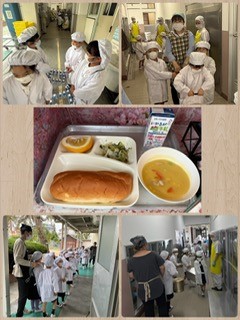 鶏肉とコーンのシチューは、鶏肉とベーコンを主材にじゃがいも、たまねぎ、コーン、にんじん、マッシュルーム、彩りにむきえだまめを使用したシチューです。コクがありとてもおいしいシチューに、できあがっています。今日はラッキーにんじん入ってたかな。