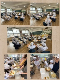 スープは、鶏肉を主材にじゃがいも、たまねぎ、にんじん、しめじを使用し、彩りにグリンピースを使用しています。