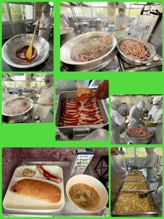 ウインナーのケチャップソースは、ゆでたウインナーソーセージに、ケチャップ、トンカツソースなどを合わせて煮、でん粉でとろみをつけたソースをかけます。