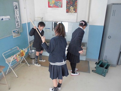 校内の廊下や手洗い場を掃除してくれていました。