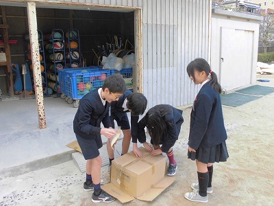 体育倉庫内の用具の整頓や掃除してくれていました。
