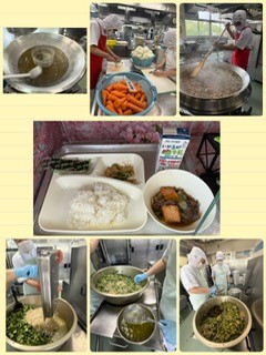 牛肉と野菜のいため煮は、牛肉を主材に、つなこんにゃく、あつあげ、たまねぎ、にんじん、青みにさんどまめを使用し、甘辛く味つけしています。